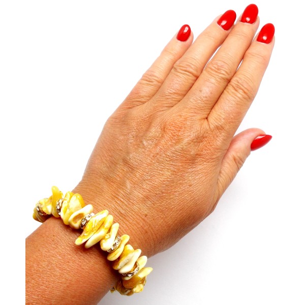 - Oryginalna, ręcznie wykonana bransoletka z bursztynu bałtyckiego, oszlifowanego. Do każdego wyrobu dołączany jest certyfikat. Długość 20 cm, typ zapięcia – guzik wykony z bursztynu, waga 18,4 g. Każdy wyrób wysyłany jest w eleganckim, firmowym opakowaniu.