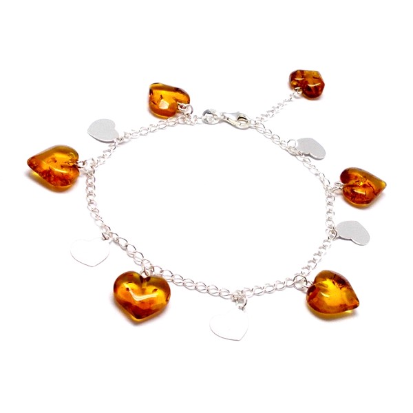 SREBRNA BRANSOLETKA Z BURSZTYNEM