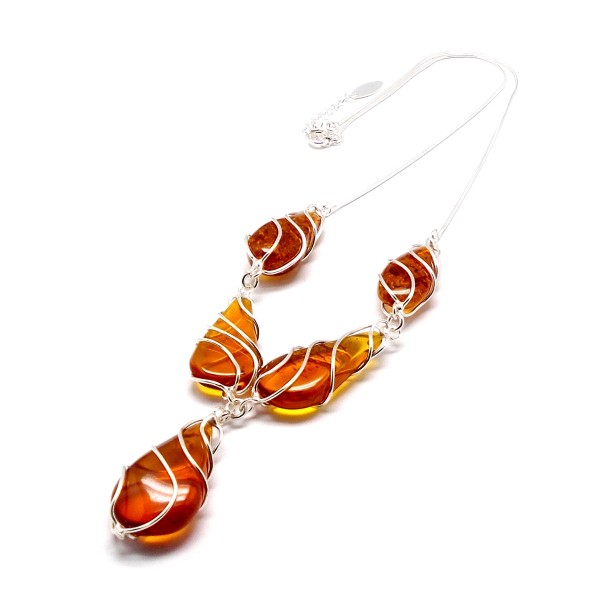 KOLIA SREBRNA Z BURSZTYNEM
