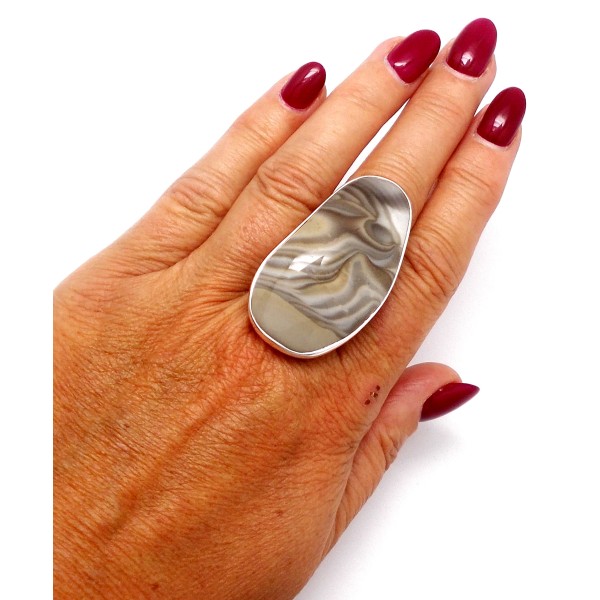 - Oryginalna bransoleta z krzemienia pasiastego i srebra 925. Wysokość kamienia z oprawą 45 mm, szerokość 38 mm, obwód 20 cm. Wyrób jest ocechowany zgodnie z Ustawą Prawo Probiercze (DZ.U.nr 92poz. 529 z 2011r.). Waga kamienia 24,9 g, masa srebra 24,71 g. Sprzedaży podlega wyrób ze zdjęcia, niepowtarzalny. Każdy wyrób jest wysyłany w eleganckim, firmowym opakowaniu.