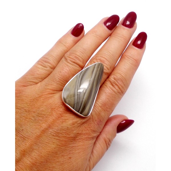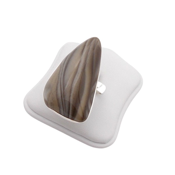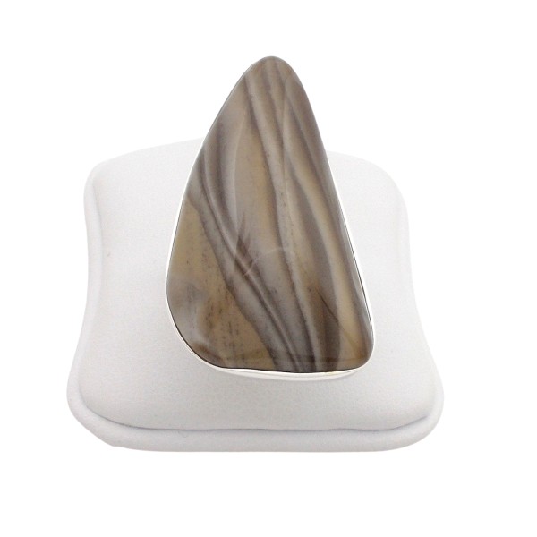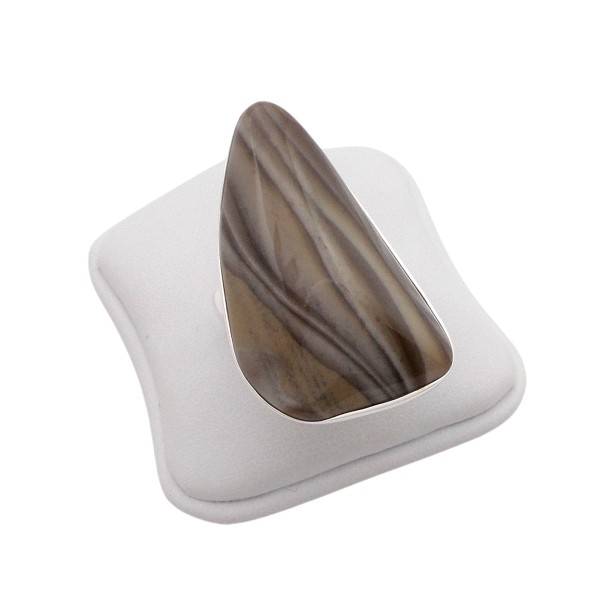 - Elegancka, oryginalna bransoleta z krzemienia pasiastego i srebra próby 925. Waga kamienia 17,5 g, masa srebra 20,2 g, wysokość kamienia z oprawą 48 mm, szerokość 46 mm, obwód 20 cm. Wyrób jest ocechowany zgodnie z Ustawą Prawo Probiercze (DZ.U.nr 92poz. 529 z 2011r.). Sprzedaży podlega wyrób ze zdjęcia, niepowtarzalny. Każdy wyrób wysyłany jest w eleganckim, firmowym opakowaniu.