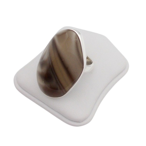 - Oryginalny, unikatowy, ręcznie wykonany pierścionek ze srebra próby 925 z krzemieniem pasiastym (polskim diamentem), ocechowany zgodnie z Ustawą Prawo Probiercze (DZ.U.nr 92poz. 529 z 2011r.). Długość krzemienia z oprawą 39 mm, szerokość krzemienia z oprawą 25 mm, rozmiar 14–24, regulowany. Sprzedaży podlega pierścionek ze zdjęcia, niepowtarzalny, unikatowy. Waga samego krzemienia 7,1 g, masa srebra 10,2 g. Do każdego wyrobu dołączany jest certyfikat. Każdy wyrób wysyłany jest w eleganckim, opakowaniu. Krzemień w pierścionku jest unikatem.