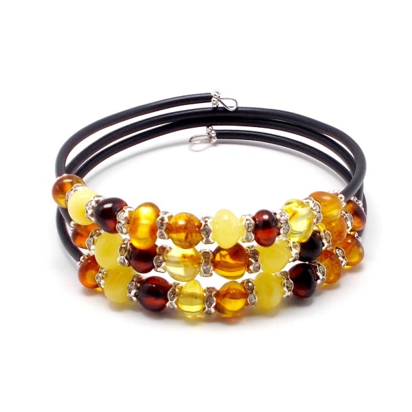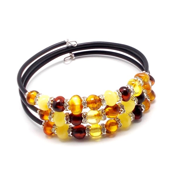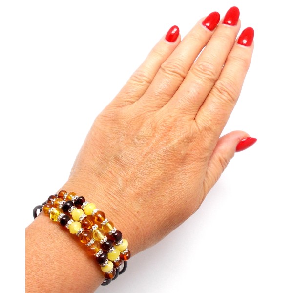 - Oryginalna, ręcznie wykonana bransoletka z bursztynu bałtyckiego z elementami ze stali szlachetnej. Do każdego wyrobu dołączany jest certyfikat. Bransoletka wykonana na drucie pamięciowym, bez zapięcia, obwód 18-21 cm (dostosowuje się do nadgarstka), oplatana wokół nadgarstka. Średnica bursztynów 6-7 mm, bursztyny mogą p[osiadać naturalne wżery, które podkreślają ich naturalność. Każdy wyrób wysyłany jest w eleganckim, firmowym opakowaniu.
