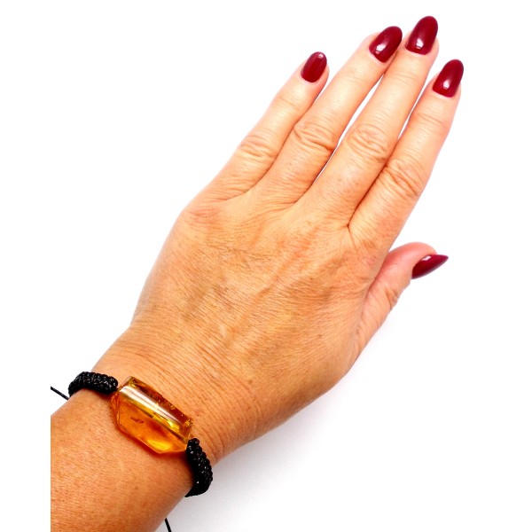 • Oryginalna bransoletka ręcznie wykonana z bursztynu bałtyckiego na sznurku bawełnianym, woskowanym. To wyjątkowy i niepowtarzalny wyrób, który na pewno wzbudzi zainteresowanie swoim niepowtarzalnym stylem. Do każdej bransoletki dołączony jest certyfikat autentyczności, gwarantujący wysoką jakość wyrobu. Bransoletka ma długość 16-22 cm i jest regulowana, co zapewnia idealne dopasowanie do nadgarstka. Bursztyn (ręcznie oszlifowany, ma naturalne wżery (bok bursztynu), które podkreślają naturalność kamienia) ma długość 27 mm i szerokość 16 mm, tworząc imponujący i wyróżniający się element biżuterii. Cała bransoletka waży 4,32 g, co czyni ją nie tylko piękną, ale również wygodną w noszeniu. Ten wyjątkowy wyrób jest sprzedawany z dokładnie tym bursztynem, który widzisz na zdjęciu, dzięki czemu możesz być pewien, że otrzymasz wyjątkowy, niepowtarzalny produkt. Każda bransoletka wysyłana jest w eleganckim, firmowym opakowaniu, co sprawia, że jest idealnym prezentem dla siebie lub dla bliskiej osoby.