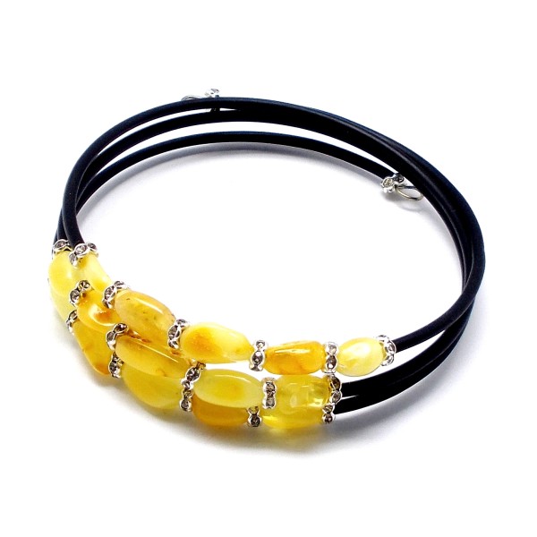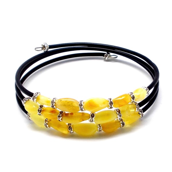 - Oryginalna, ręcznie wykonana bransoletka z bursztynu bałtyckiego, stali szlachetnej z cyrkoniami. Do każdego wyrobu dołączony jest certyfikat. Bransoletka wykonana na drucie pamięciowym, bez zapięcia, obwód 18–21 cm (dostosowuje się do nadgarstka), oplatana wokół nadgarstka. Średnica bursztynów 6-7 mm. Każdy wyrób wysyłany jest w eleganckim, firmowym opakowaniu. Oryginalny prezent na wyjątkowe okazje.