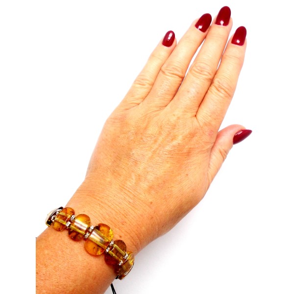 - Oryginalna bransoletka jest ręcznie wykonana z bursztynu bałtyckiego z elementami ze stali. To wyjątkowy i niepowtarzalny wyrób, który na pewno wzbudzi zainteresowanie swoim niepowtarzalnym stylem. Do każdej bransoletki dołączony jest certyfikat autentyczności, gwarantujący wysoką jakość wyrobu. Bransoletka o regulowanej długości 16–20 cm, bez zapięcia, idealnie dopasuje się do nadgarstka. Bursztyny (ręcznie oszlifowane), mogą posiadać naturalne wżery, co podkreśla ich naturalność. Długość bursztynów to 16-20 mm, szerokość 14-19 mm. Ten wyjątkowy wyrób jest sprzedawany z dokładnie tymi bursztynami, które widzisz na zdjęciu, dzięki czemu możesz być pewien, że otrzymasz wyjątkowy, niepowtarzalny produkt. Każda bransoletka wysyłana jest w eleganckim, firmowym opakowaniu, co sprawia, że jest idealnym prezentem dla siebie lub dla bliskiej osoby. Waga bransoletki 5,5 g.