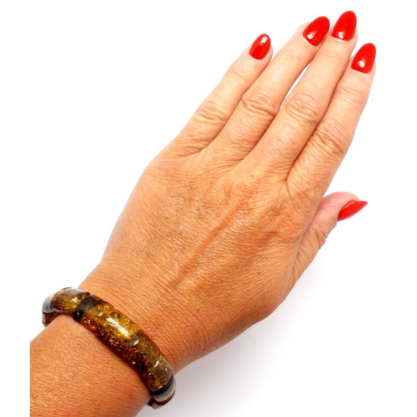 • Nasza oryginalna bransoletka wykonana jest ręcznie z bałtyckiego bursztynu. To wyjątkowy i niepowtarzalny wyrób, który na pewno wzbudzi zainteresowanie swoim niepowtarzalnym stylem. Do każdej bransoletki dołączony jest certyfikat autentyczności, gwarantujący wysoką jakość wyrobu. Bransoletka ma wewnętrzny obwód (długość) 18 cm i jest bez zapięcia, wykonana na dwóch wzmocnionych gumkach. Bursztyny mają wysokość od 12 do 13 mm i posiadają naturalne wżery, które podkreślają ich naturalność. Cała bransoletka waży 9,4 g, co czyni ją nie tylko piękną, ale również wygodną w noszeniu. Ten wyjątkowy wyrób jest sprzedawany z dokładnie tymi bursztynami, które widzisz na zdjęciu, dzięki czemu możesz być pewien, że otrzymasz wyjątkowy, niepowtarzalny produkt. Każda bransoletka wysyłana jest w eleganckim, firmowym opakowaniu, co sprawia, że jest idealnym prezentem dla siebie lub dla bliskiej osoby.