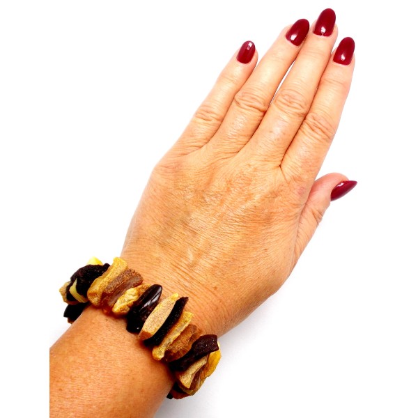 Ręcznie wykonana bransoletka z bursztynu bałtyckiego, nieoszlifowanego. Do każdego wyrobu dołączony jest certyfikat. Wewnętrzny obwód 16,5 cm, bez zapięcia, na gumce. Szerokość bursztynów 20-25 mm, waga 28,50 g. Sprzedaży podlega wyrób ze zdjęcia, niepowtarzalny. Każdy wyrób wysyłany jest w eleganckim, firmowym opakowaniu. Sprzedaży podlega bransoletka ze zdjęcia, niepowtarzalna.