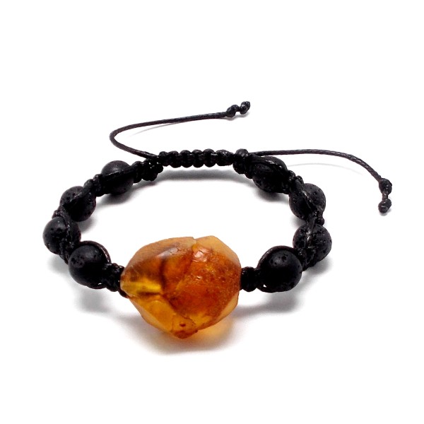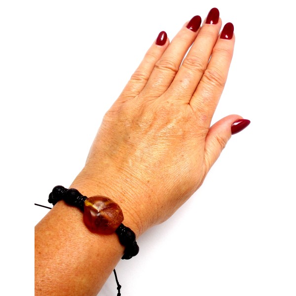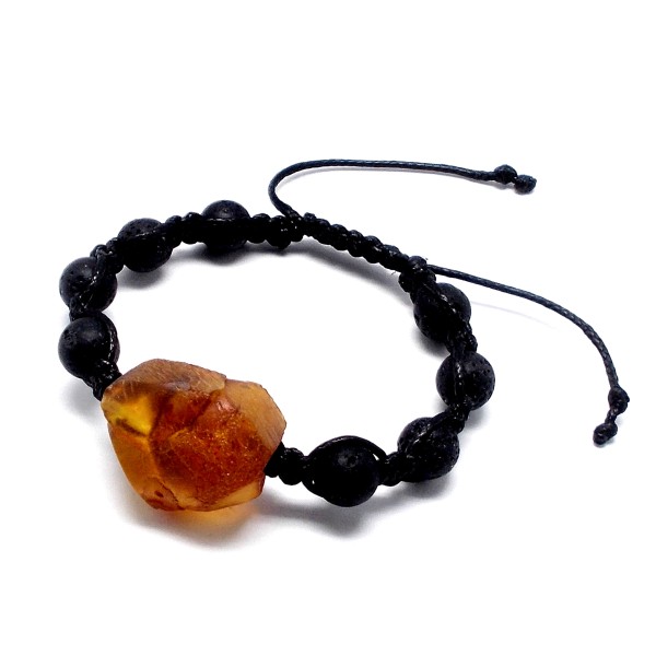 - Nasza oryginalna bransoletka wykonana jest ręcznie na sznurku bawełnianym, woskowanym z bursztynem bałtyckim, nieoszlifowanym i kulkami z lawy. To wyjątkowy i niepowtarzalny wyrób, który na pewno wzbudzi zainteresowanie swoim niepowtarzalnym stylem. Do każdej bransoletki dołączony jest certyfikat autentyczności, gwarantujący wysoką jakość wyrobu. Bransoletka ma długość 16–22 cm i jest bez zapięcia, regulowana. Bursztyn ma długość 24 mm, a szerokość 20 mm, średnica kulek z lawy 8 mm, tworzące imponujący i wyróżniający się element biżuterii. Każda bransoletka wysyłana jest w eleganckim, firmowym opakowaniu, co sprawia, że jest idealnym prezentem dla siebie lub dla bliskiej osoby. Sprzedaży podlega wyrób ze zdjęcia, niepowtarzalny.