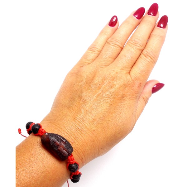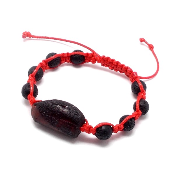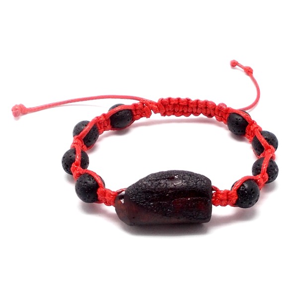 - Nasza oryginalna bransoletka wykonana jest ręcznie na sznurku bawełnianym, woskowanym z bursztynem bałtyckim, nieoszlifowanym i kulkami z lawy. To wyjątkowy i niepowtarzalny wyrób, który na pewno wzbudzi zainteresowanie swoim niepowtarzalnym stylem. Do każdej bransoletki dołączony jest certyfikat autentyczności, gwarantujący wysoką jakość wyrobu. Bransoletka ma długość 16–22 cm i jest bez zapięcia, regulowana. Bursztyn ma długość 27 mm, a szerokość 15 mm, średnica kulek z lawy 8 mm, tworzące imponujący i wyróżniający się element biżuterii. Każda bransoletka wysyłana jest w eleganckim, firmowym opakowaniu, co sprawia, że jest idealnym prezentem dla siebie lub dla bliskiej osoby. Sprzedaży podlega wyrób ze zdjęcia, niepowtarzalny.