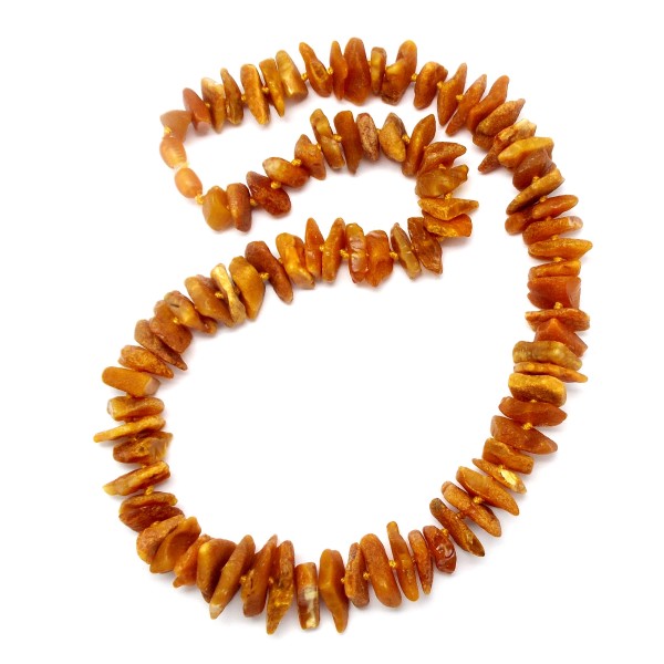 - Oryginalny naszyjnik ręcznie wykonany z bursztynu bałtyckiego, nieoszlifowanego. To wyjątkowy i niepowtarzalny wyrób, który na pewno wzbudzi zainteresowanie swoim niepowtarzalnym stylem. Do każdego naszyjnika dołączony jest certyfikat autentyczności, gwarantujący wysoką jakość wyrobu. Naszyjnik ma długość 56 cm , szerokość bursztynów 13-24 mm. Cały naszyjnik waży 59,70 g, co czyni go nie tylko pięknym, ale również wygodnym w noszeniu. Ten wyjątkowy wyrób jest sprzedawany dokładnie z tymi bursztynami, które widać na zdjęciu, dzięki czemu można być pewnym, że otrzymasz wyjątkowy, niepowtarzalny produkt. Każdy naszyjnik wysyłany jest w eleganckim, firmowym opakowaniu, co sprawia, że jest idealnym prezentem dla siebie lub dla bliskiej osoby.