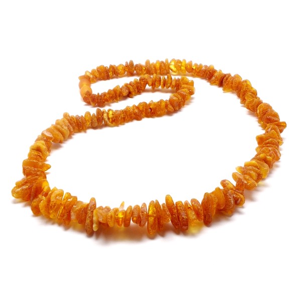 - Oryginalny, ręcznie wykonany naszyjnik z bursztynu bałtyckiego, nieoszlifowanego. To wyjątkowy i niepowtarzalny wyrób, który na pewno wzbudzi zainteresowanie swoim niepowtarzalnym stylem. Do każdego naszyjnika dołączony jest certyfikat autentyczności, gwarantujący wysoką jakość wyrobu. Naszyjnik ma długość 50cm, a szerokość bursztynów 6-12 mm. Cały naszyjnik waży 16-17 g, co czyni go nie tylko pięknym, ale również wygodnym w noszeniu. Każdy naszyjnik wysyłany jest w eleganckim, firmowym opakowaniu, co sprawia, że jest idealnym prezentem dla siebie lub dla bliskiej osoby.