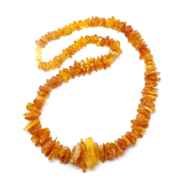 - Oryginalny, ręcznie wykonany naszyjnik z bursztynu bałtyckiego, nieoszlifowanego. Do każdego wyrobu dołączony jest certyfikat. Długość naszyjnika 55 cm, szerokość bursztynów 8-30 mm, waga 43 g, zapięcie typu wkręcanego. Sprzedaży podlega wyrób ze zdjęcia, niepowtarzalny. Każdy wyrób wysyłany jest w eleganckim, firmowym opakowaniu, oryginalny prezent na wyjątkowe okazje.