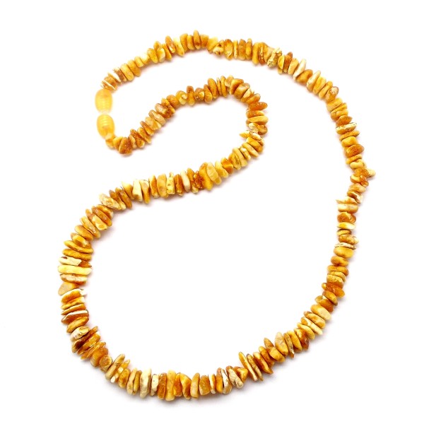 - Oryginalny, ręcznie wykonany naszyjnik z bursztynu bałtyckiego, nieoszlifowanego. Do każdego wyrobu dołączony jest certyfikat. Długość naszyjnika 50 cm, szerokość bursztynów 5-10 mm, waga 16-17 g. Zapięcie typu wkręcanego Każdy wyrób wysyłany jest w eleganckim, firmowym opakowaniu.