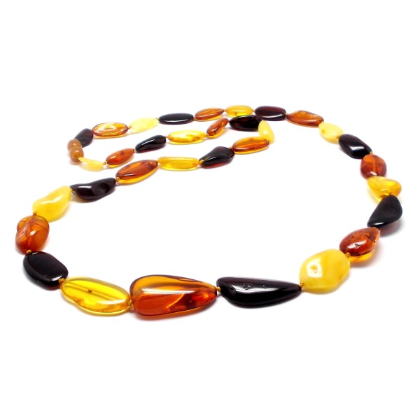 - Oryginalny, ręcznie wykonany naszyjnik z bursztynu bałtyckiego, oszlifowanego (bursztyny ręcznie oszlifowane). Do każdego wyrobu dołączony jest certyfikat. Długość naszyjnika 70 cm, długość bursztynów w naszyjniku 11-28 mm, szerokość bursztynów 7-15 mm, waga 23,80 g, zapięcie typu wkręcanego. Bursztyny posiadają naturalne wżery, które podkreślają ich naturalność. Sprzedaży podlega wyrób ze zdjęcia, niepowtarzalny. Każdy wyrób wysyłany jest w eleganckim, firmowym opakowaniu, oryginalny prezent na wyjątkowe okazje.