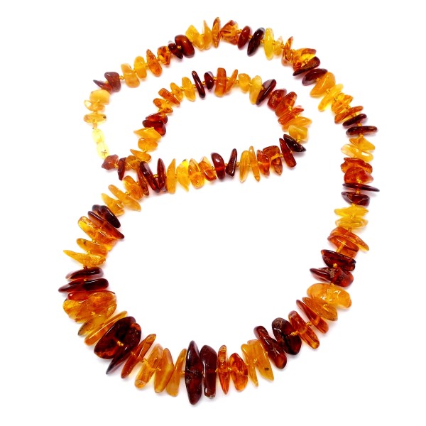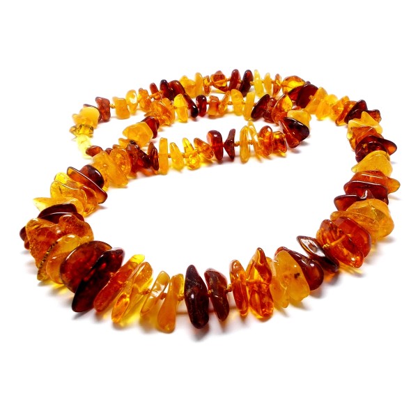 - Nasz oryginalny naszyjnik jest ręcznie wykonany z bursztynu bałtyckiego, oszlifowanego z kolekcji "SZLIFY". To wyjątkowy i niepowtarzalny wyrób, który na pewno wzbudzi zainteresowanie swoim niepowtarzalnym stylem. Do każdego naszyjnika dołączony jest certyfikat autentyczności, gwarantujący wysoką jakość wyrobu. Naszyjnik ma długość 77 cm, a szerokość bursztynów to 11-30 mm (bursztyny posiadają naturalne wżery, które podkreślają naturalność kamieni), które tworzą imponujący i wyróżniający się element biżuterii. Cały naszyjnik waży 73,33 g, co czyni go nie tylko pięknym, ale również wygodnym w noszeniu. Ten wyjątkowy wyrób jest sprzedawany dokładnie z tymi bursztynami, które widać na zdjęciu, dzięki czemu można być pewnym, że otrzymasz wyjątkowy, niepowtarzalny produkt. Każdy naszyjnik wysyłany jest w eleganckim, firmowym opakowaniu, co sprawia, że jest idealnym prezentem dla siebie lub dla bliskiej osoby. Naszyjnik posiada zapięcie typu wkręcanego.