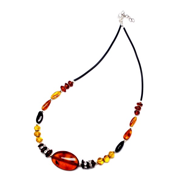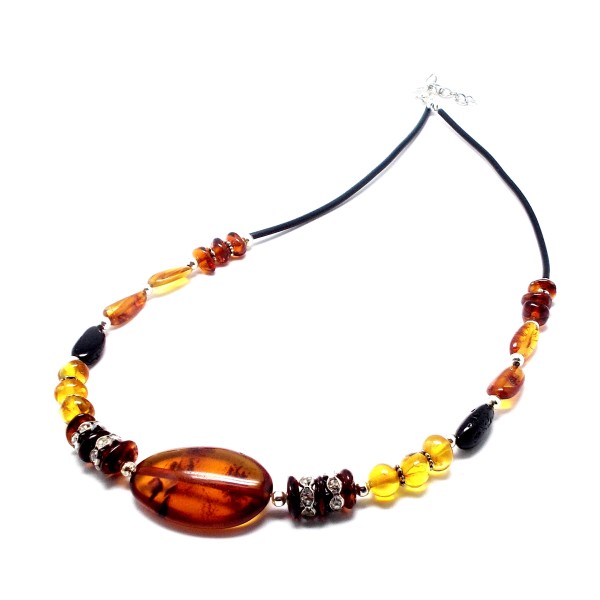 - Oryginalny, ręcznie wykonany naszyjnik z bursztynu bałtyckiego, oszlifowanego z elementami ze stali szlachetnej. Do każdego wyrobu dołączony jest certyfikat. Długość naszyjnika 43-45 cm (regulowana), waga 9,20 g, długość środkowego bursztynu 29 mm, szerokość 19 mm, bursztyny posiadają naturalne wżery, które podkreślają naturalność kamieni. Sprzedaży podlega wyrób ze zdjęcia, niepowtarzalny. Każdy wyrób wysyłany jest w eleganckim, firmowym opakowaniu.