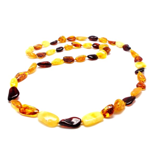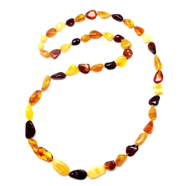 - Nasz oryginalny naszyjnik jest ręcznie wykonany z bursztynu bałtyckiego, ręcznie oszlifowanych bursztynów. To wyjątkowy i niepowtarzalny wyrób, który na pewno wzbudzi zainteresowanie swoim niepowtarzalnym stylem. Do każdego naszyjnika dołączony jest certyfikat autentyczności, gwarantujący wysoką jakość wyrobu. Naszyjnik ma długość 62 cm, długość bursztynów to 9-18 mm, a szerokość 7-11 mm, bursztyny posiadają naturalne wżery, które podkreślają ich naturalność. Cały naszyjnik waży 15,10 g, co czyni go nie tylko pięknym, ale również wygodnym w noszeniu. Ten wyjątkowy wyrób jest sprzedawany dokładnie z tymi bursztynami, które widać na zdjęciu, dzięki czemu można być pewnym, że otrzymasz wyjątkowy, niepowtarzalny produkt. Każdy naszyjnik wysyłany jest w eleganckim, firmowym opakowaniu, co sprawia, że jest idealnym prezentem dla siebie lub dla bliskiej osoby. Naszyjnik posiada zapięcie typu wkręcanego.