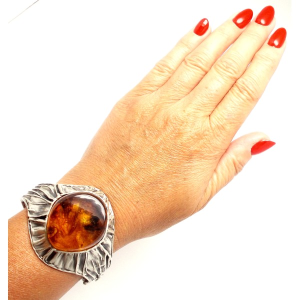 - Nasza oryginalna bransoletka wykonana jest ręcznie z bursztynu bałtyckiego i srebra 925, oksydowanego. To wyjątkowy i niepowtarzalny wyrób, który na pewno wzbudzi zainteresowanie swoim niepowtarzalnym stylem. Do każdej bransoletki dołączony jest certyfikat autentyczności, gwarantujący wysoką jakość wyrobu. Bransoletka ma wewnętrzny obwód 18 cm. Bursztyn w bransoletce, który jest unikatem na długość 35 mm, a włącznie z oprawą ze srebra 50 mm, szerokość bursztynu to 31 mm. Cała bransoletka waży 45,70 g, co czyni ją nie tylko piękną, ale również wygodną w noszeniu. Sprzedaży podlega dokładnie bransoletka którą widzisz na zdjęciu, dzięki czemu możesz być pewien, że otrzymasz wyjątkowy, niepowtarzalny produkt. Każda bransoletka wysyłana jest w eleganckim, firmowym opakowaniu, co sprawia, że jest idealnym prezentem dla siebie lub dla bliskiej osoby.