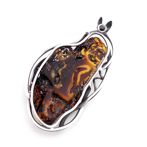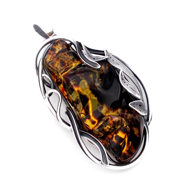 - Oryginalny wisior wykonany z bursztynu bałtyckiego i srebra 925, oksydowanego. Do każdego wyrobu dołączony jest certyfikat. Wysokość wisiorka z zawieszką 90 mm, szerokość wisiorka 45 mm, waga wisiorka 36,95 g. Sprzedaży podlega wyrób ze zdjęcia, niepowtarzalny. Czwarte zdjęcie przedstawia drugą stronę wisiorka z naturalnymi wżerami, które podkreślają naturalność bursztynu. Każdy wyrób wysyłany jest w eleganckim, firmowym opakowaniu. Oprawiony kamień jest unikatem. Wyrób jest ocechowany zgodnie z Ustawą Prawo Probiercze (DZ.U.nr 92poz. 529 z 2011r.).
