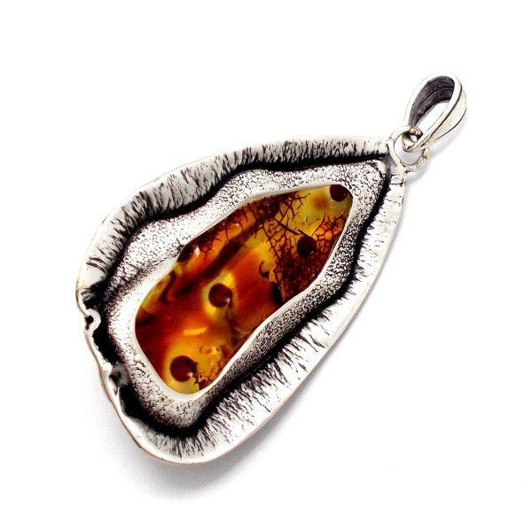 - Oryginalny wisior wykonany z bursztynu bałtyckiego i srebra 925, oksydowanego. Do każdego wyrobu dołączony jest certyfikat. Wysokość wisiorka z zawieszką 73 mm, szerokość wisiorka 37 mm, waga 16,93 g. Sprzedaży podlega wyrób ze zdjęcia, niepowtarzalny, czwarte zdjęcie przedstawia druga stronę wisiorka. Bursztyn posiada naturalne wżery, co podkreśla jego naturalność. Każdy wyrób wysyłany jest w eleganckim, firmowym opakowaniu. Oryginalny prezent na wyjątkowe okazje. Oprawiony bursztyn jest unikatem. Wyrób jest ocechowany zgodnie z Ustawą Prawo Probiercze (DZ.U.nr 92poz. 529 z 2011r.).
